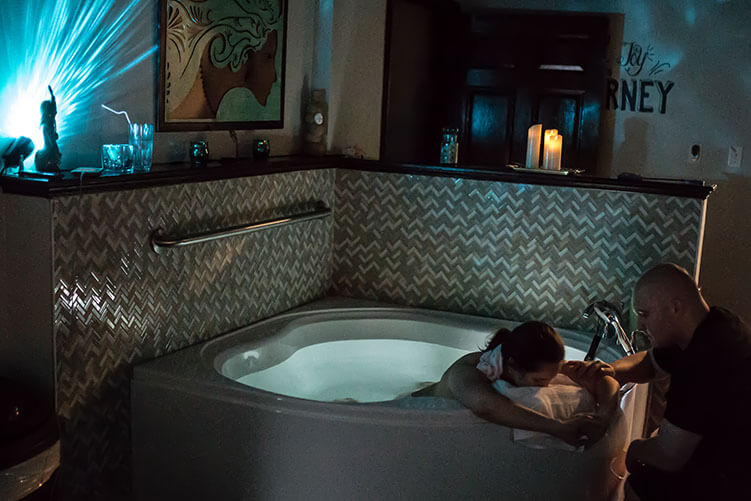We have two birth rooms which both offer private bathrooms, extra deep water birth tubs and endless hot water, squat bars, birthing stools, remote control queen beds, soft and comfy linens, aromatherapy and music options.