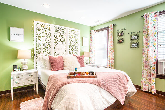 Decorated in green, with plenty of windows and natural light, the Serenity Suite’s vive is cheery and warm.
